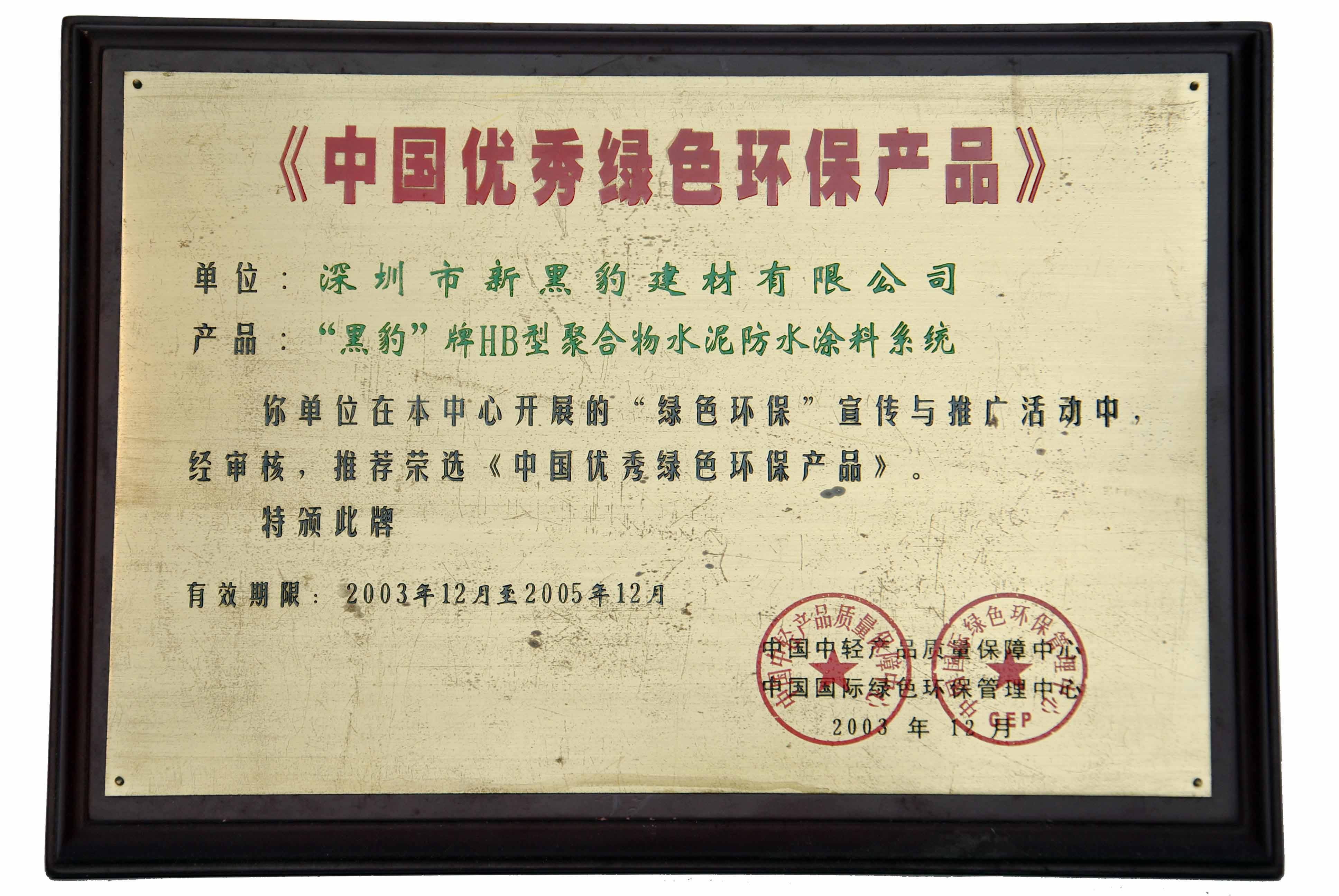 我公司產品2003年12月獲得《中國優秀綠色環保產品》榮譽證書