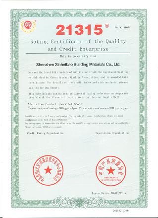 2012年8月,通過中品質協(北京)質量信用評估中心有限公司依照《企業質量信用評價規范》對我們公司經過征信評估,我們公司的質量信用等級為AAA級,中國產品質量協會為我們公司頒發了《全國企業質量信用等級證書》。