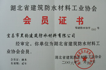 2008年3月28日,我公司宜昌分公司被認定為“湖北省建筑防水材料工業協會”會員單位,我公司同時還是“中國建筑學會防水技術專業委員會”會員單位。
