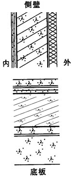 備注:1、各層構造均應按有關施工規范嚴格操作。 2、防水層基層施工時無明水即可。 3、HB型聚合物水泥防水涂料(JS-II型)HB:水泥=1:(0.9~1.0)。 4、HB型聚合物水泥防水涂料(JS-I型)HB:粉料:水=1:1:(0.0~0.5)。 5、A型HB聚合物防水砂漿(簡稱A型砂漿):HB:水泥:細砂=1:2:4 6、背水面設防作為迎水面設防的補充措施,構造簡單,維護方便。