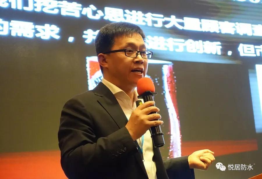 東方雨虹民用建材有限責任公司副總經理熊衛鋒作了《家裝防水品牌打造與市場戰略規劃發展》的報告。