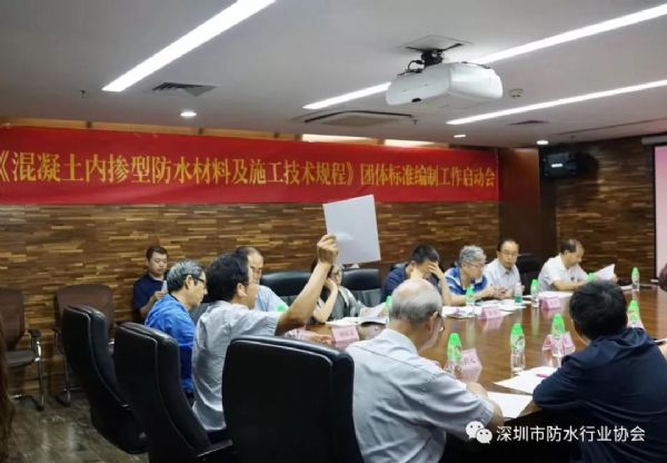 2019年5月16日,在深圳市設計大廈12樓會議室,深圳市防水行業協會組織召開了《混凝土內摻型自修復防水材料及施工技術規程》團體標準編制工作的啟動會議。