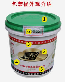 ③ 標貼上方印有紅底白字的“《聚合物水泥防水涂料》國家標準參編單位”字樣。